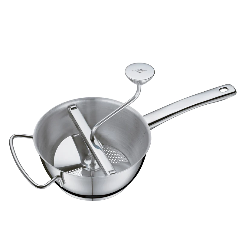 Sin da tempi il passaverdure รจ un vero classico nelle cucine italiane, per fare le conserve e le passate di pomodoro. Questo attrezzo รจ ideale per passare al setaccio frutta, verdura o altri impasti morbidi. Dotato di 3 dischi intercambiabili con fori fini (2 mm), medi (3 mm) e grandi (8 mm) in base al risultato desiderato. Realizzato in acciaio inossidabile. Lavabile in lavastoviglie.