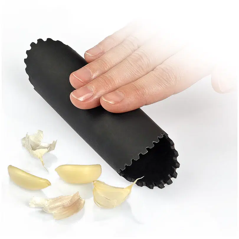Il pratico aiutante da cucina permette di sbucciare l’aglio in modo rapido, comodo e senza aver problemi con il cattivo odore sulle dita. Rotolare, esercitando una leggera pressione, il tubo in silicone con gli spicchi d’aglio all’interno in avanti ed indietro finchรจ la buccia si stacca. Lavabile in lavastoviglie.