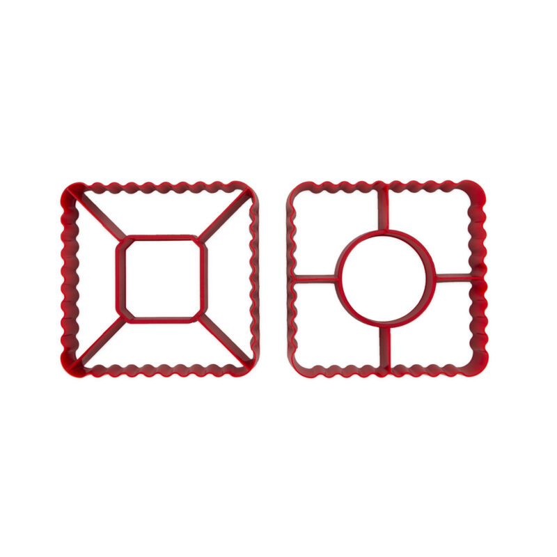 Con questi tagliapasta puoi tagliare facilmente e con precisione la pasta sfoglia per piccole particelle. Una noce di ripieno al centro, ripiegare le ali di pasta sul ripieno, spennellare con un po’ d’uovo e infornare. Divertiti a farcire e cuocere!
