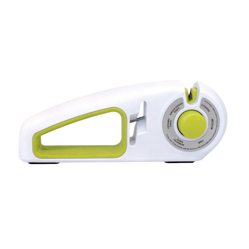 Questo affilacoltelli manuale con 7 meccanismi selezionabili permette di ripristinare, rifinire e mantenere il filo di coltelli lisci, dentati, in ceramica, a filo singolo e persino forbici.