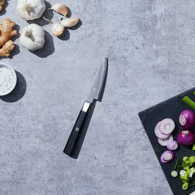 La combinazione di bellezza e affilatura caratterizza ogni coltello da cucina, anche questo Shotoh, con lama lunga 90 mm. Con la sua lama affilata su entrambi i lati, รจ utilizzato in particolare per sminuzzare, pelare e pulire frutta e verdura.
