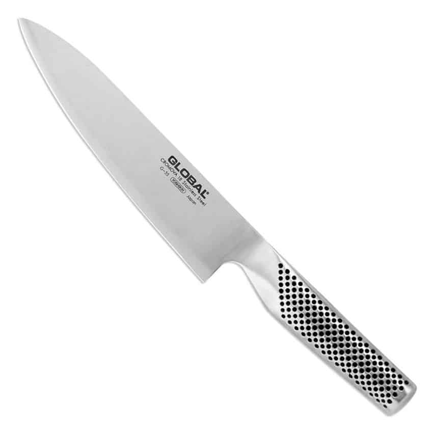 Il coltello Cuoco Global G-55 da 18 cm, รจ un coltello molto versatile, si presta per tagliare verdure, carne e pesce.