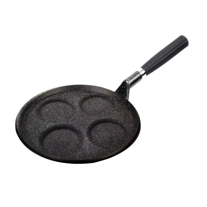 Con la padella per Pancakes antiaderente di diametro 24 cm potete realizzare contemporaneamente 4 pancakes perfettamente uguali di cira 8 cm di diametro.