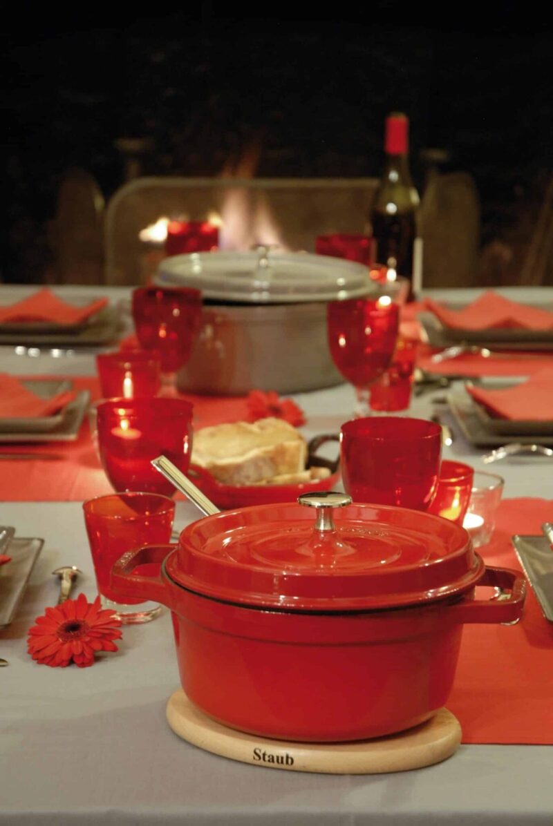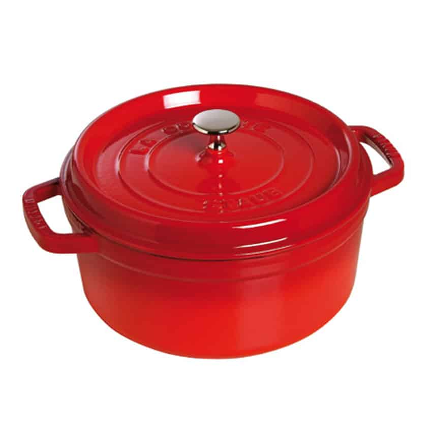 La Cocotte Tonda Rossa รจ l’ideale per cucinare con piacere e gusto, grazie all’irrorazione costante di Staub.