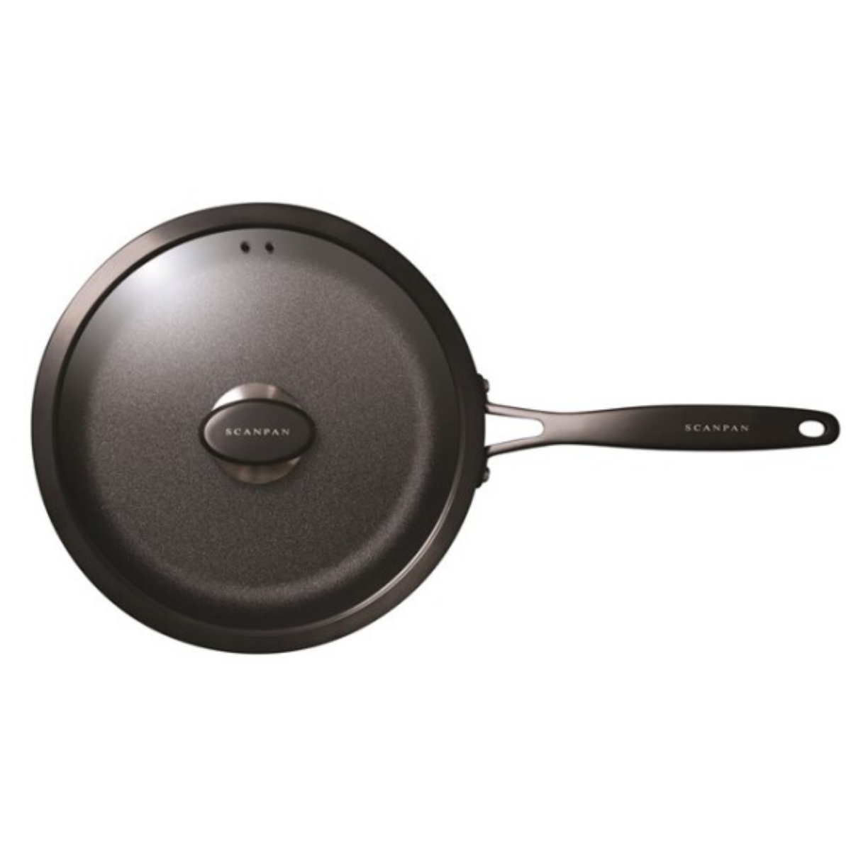 La padella alta Scanpan Pro SB+ da 28 cm, con coperchio incluso, è ideale per preparazioni abbondanti, salti in padella e cotture versatili.