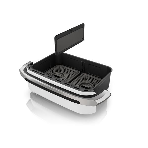 - FlexDrawer: Una singola grande zona di cottura da 10,4 litri che può essere divisa in due zone indipendenti da 5,2 litri ciascuna, grazie a un divisorio rimovibile.