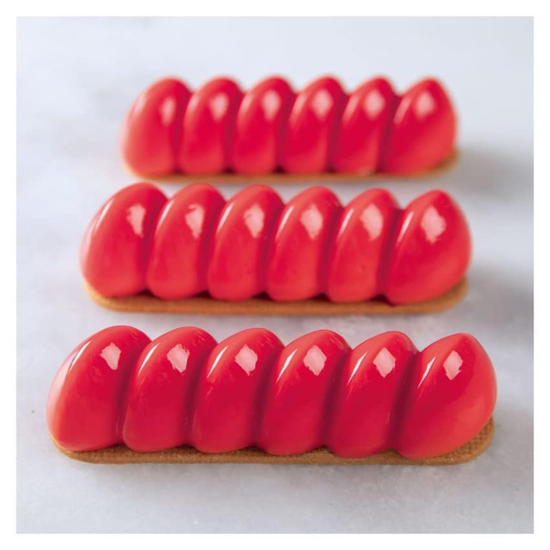Questo stampo, realizzato in collaborazione con Antonio Bachour, รจ caratterizzato da linee decise e giocose che permettono di realizzare delle monoporzioni originali ed accattivanti.