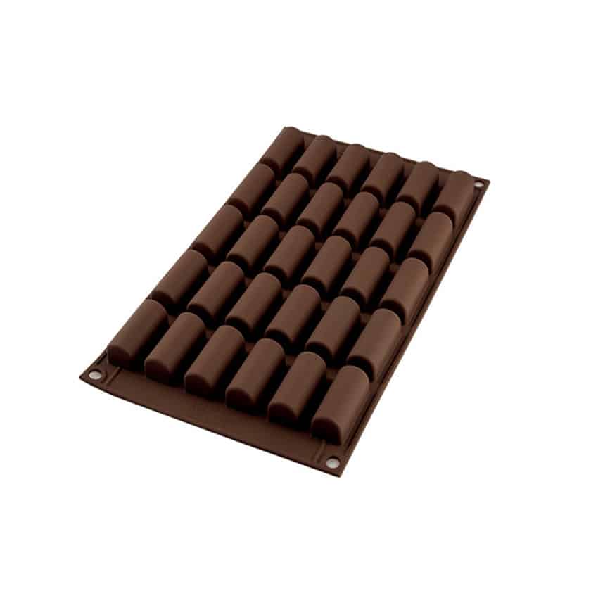 Mini Bûche è lo stampo per realizzare deliziosi cioccolatini a forma semicilindrica, come dei mini tronchetti, ancora più buoni se riempiti con sfiziosi ripieni.