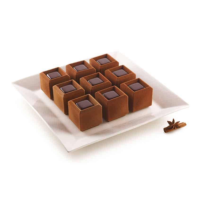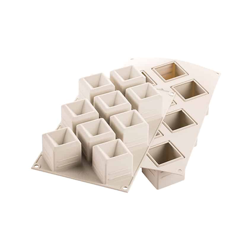 Ciascuna cavitร dello stampo Mosaico รจ provvista di una rivoluzionaria bordatura interna che conferisce una leggera forma arrotondata alla base delle vostre preparazioni.