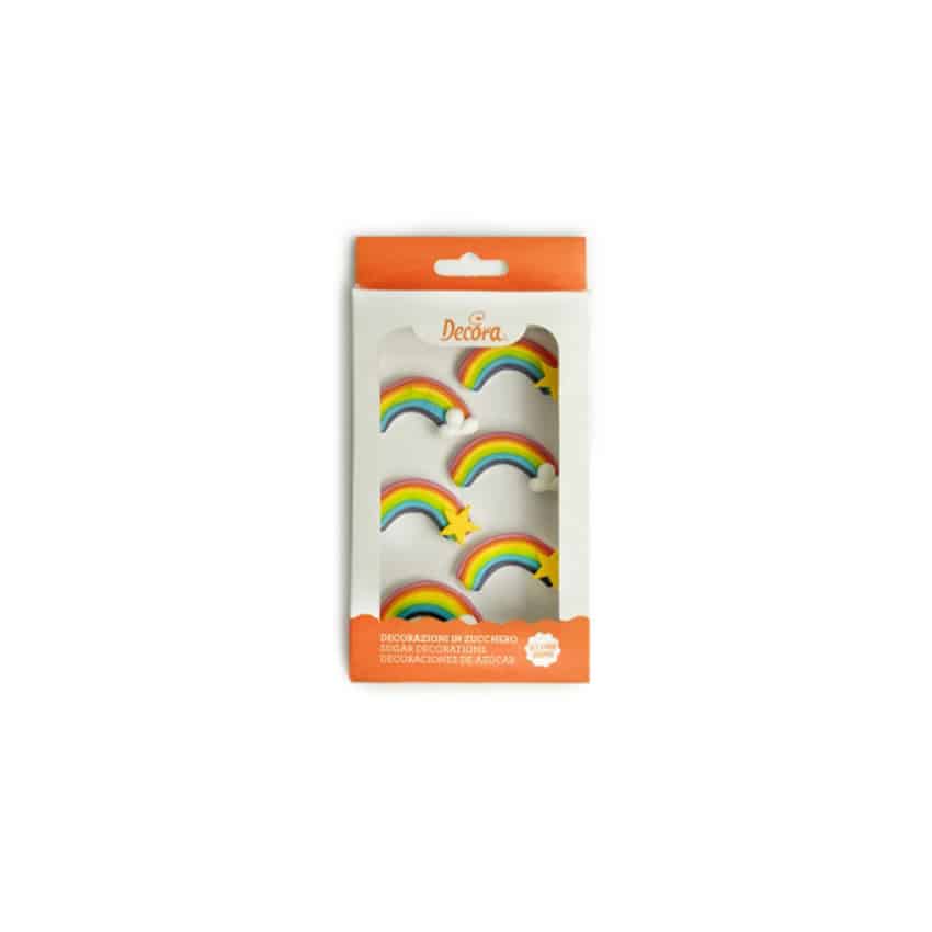 Decorazioni in zucchero a forma di arcobaleno. Confezione da 6 pezzi.