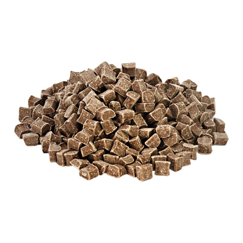 Pezzetti di puro cioccolato al latte perfetti per l’inserimento in impasti lievitati come panettone e colomba e per tutte le preparazioni da forno.