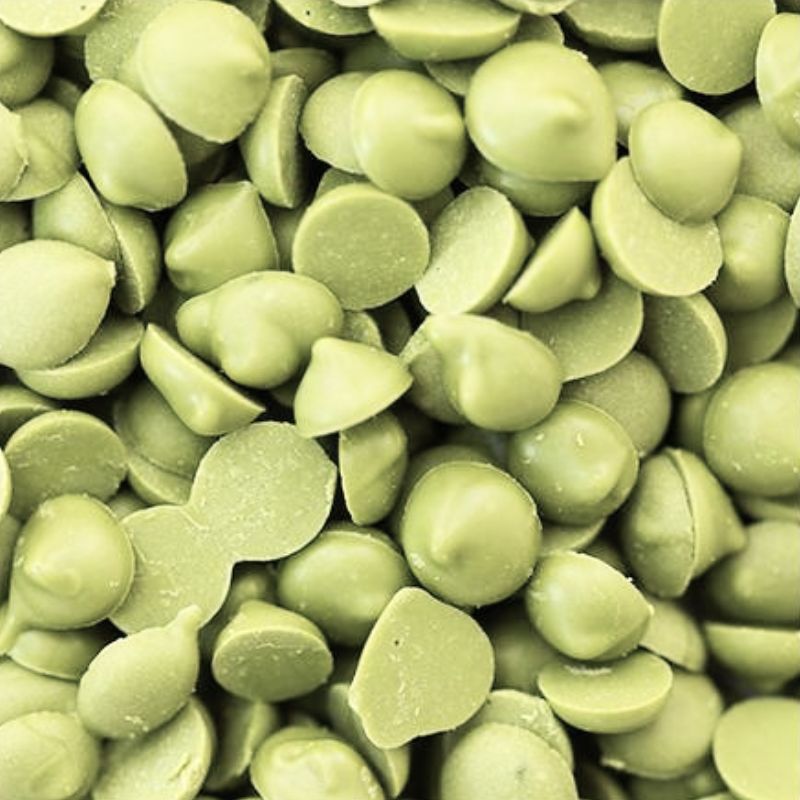 Gocce in surrogato di cioccolata di alta qualitร al pistacchio. Ideali per coperture, si sciolgono a bagnomaria e hanno un basso punto di fusione.