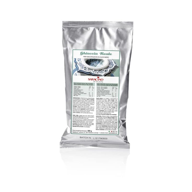 E’ una ghiaccia reale in polvere ottenuta con finissimo zucchero di canna ed altri prodotti attentamente selezionati che permetto la realizzazione di fantastiche decorazioni, da fili sottilissimi a gocce, stelle, sfoglie etc. Una volta preparata, puรฒ essere conservata per due o tre giorni in frigorifero, in recipienti di vetro o ceramiche, coperti con pellicola.