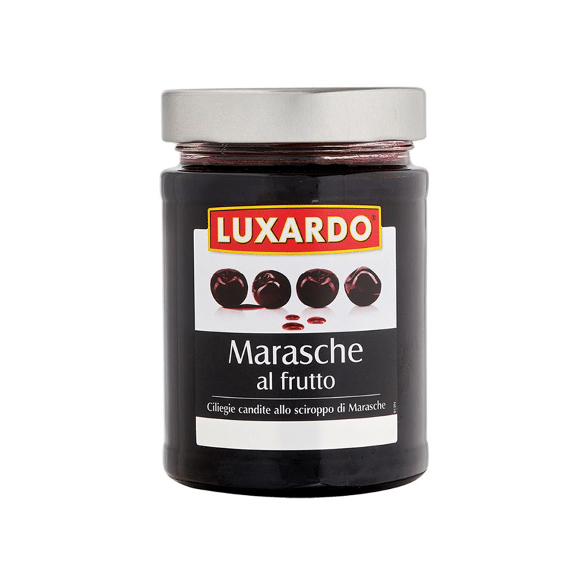 Le Marasche al frutto Luxardo sono composte dal 50% di ciliege intere e 50% di sciroppo di marasca. Non sono aggiunti nรฉ addensanti nรฉ conservanti di alcun tipo.