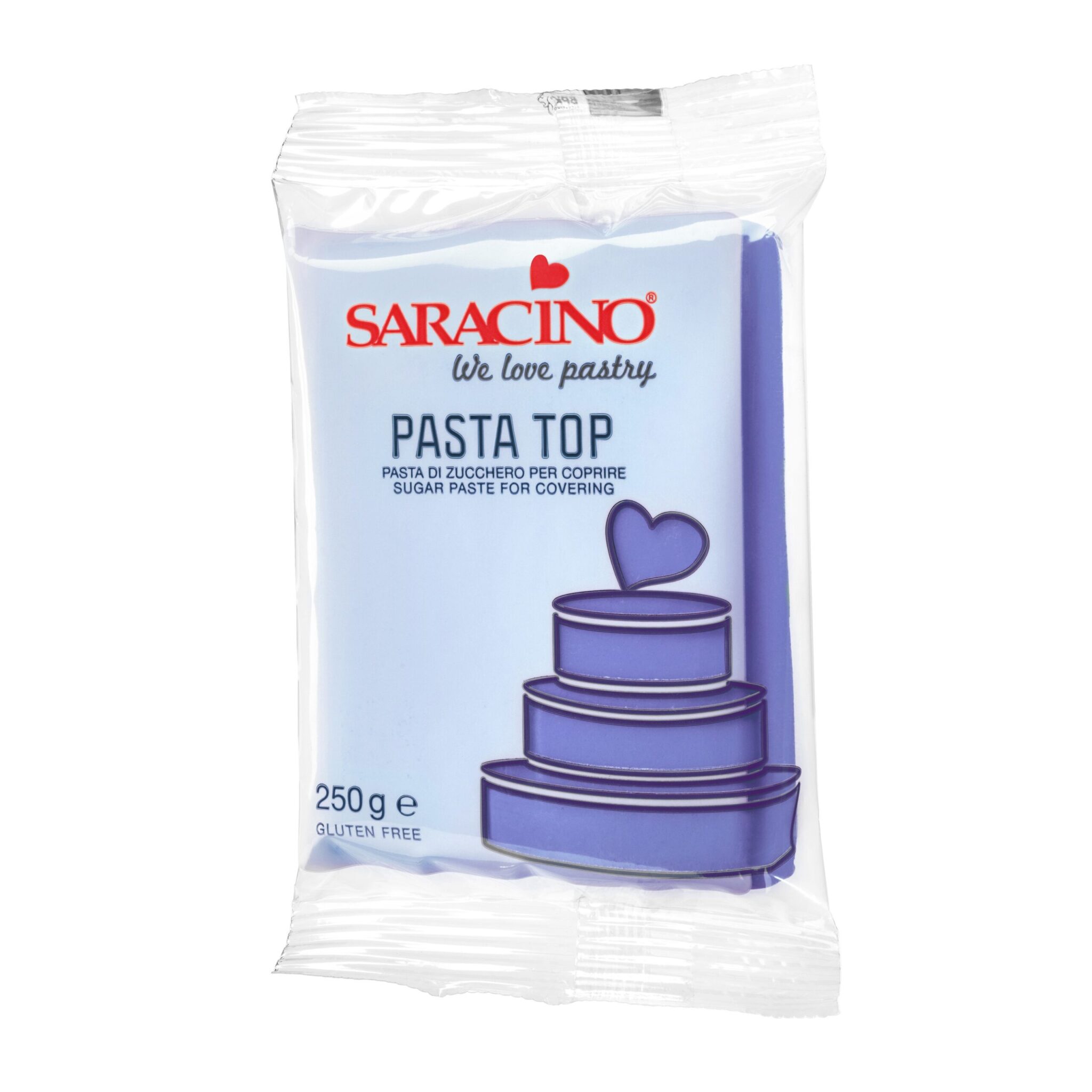La pasta di zucchero Top Viola per la copertura delle torte รจ preparata dal maestro Emmanuele Saracino per il settore professionale, elaborando una ricetta senza glutine, grassi idrogenati o frutta secca.