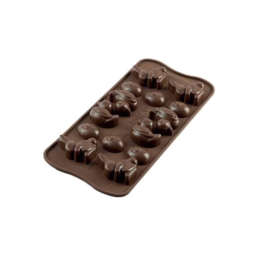 Easter, della linea Easy Choc, รจ lo stampo per cioccolatini che permette di realizzare cioccolatini a forma di papera, coniglio e uovo pasquale.