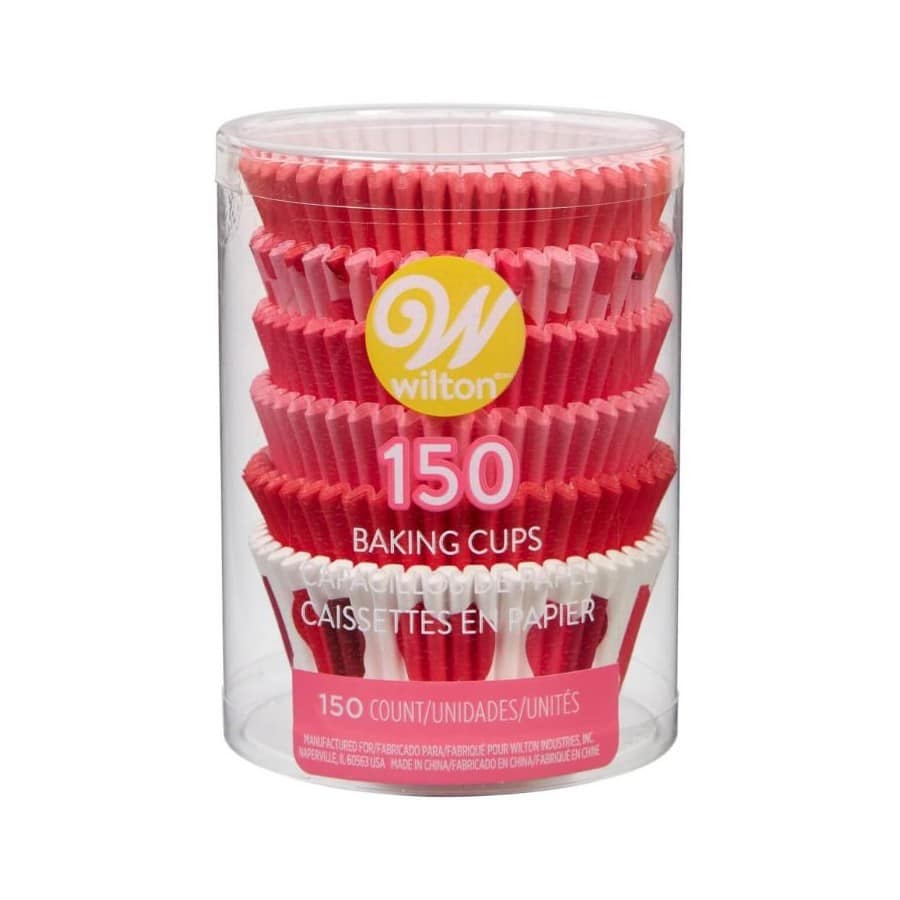 Pirottini Wilton con decorazioni in varie fantasie a tema San Valentino. Adatti alla cottura in forno di cupcake e muffin.