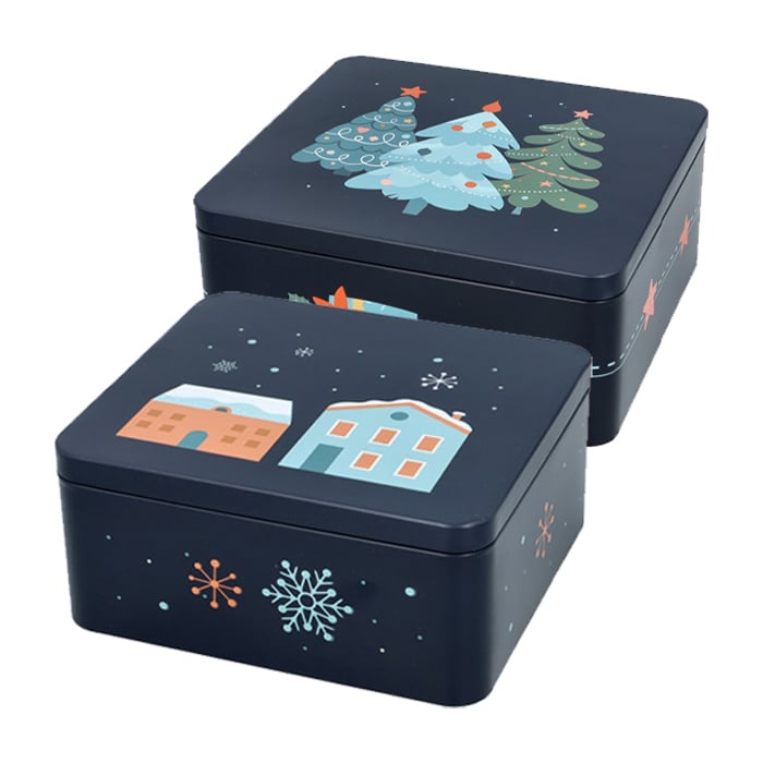 Il set di tortiere “Notte di Natale” di RBV Birkmann รจ la soluzione ideale per conservare i dolcetti natalizi fatti in casa. Queste scatole dal design curato offrono ampio spazio per biscotti, pan di zenzero o cioccolatini, mantenendoli freschi e profumati piรน a lungo.