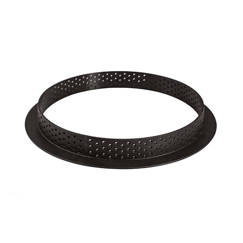 Gli anelli microforati Tarte Ring Round sono infatti estremamente resistenti al calore ed i microfori consentono l’evaporazione dell’umiditร , per una frolla croccante e asciutta.