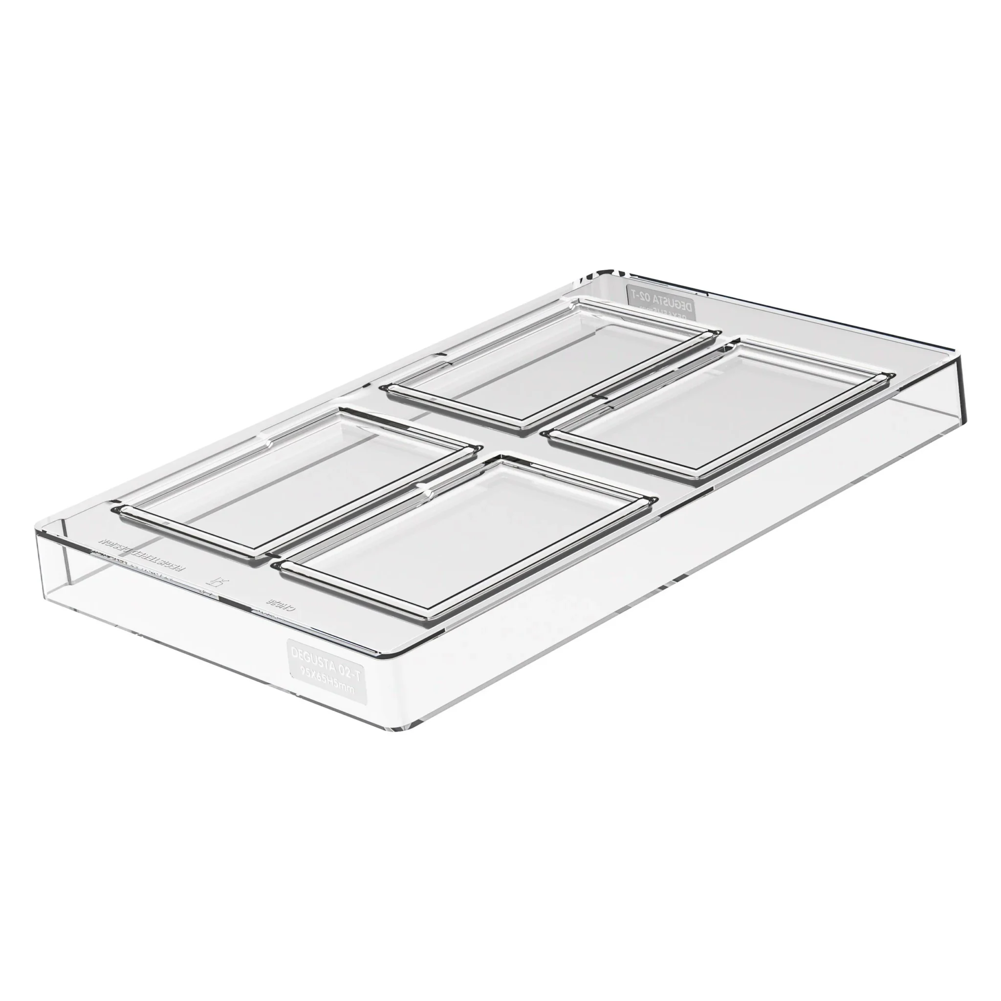 Uno stampo in Tritan pensato per realizzare sottili tavolette di cioccolato. Degusta02-T รจ perfetto per presentare il cacao nelle sue diverse complessitร  aromatiche.