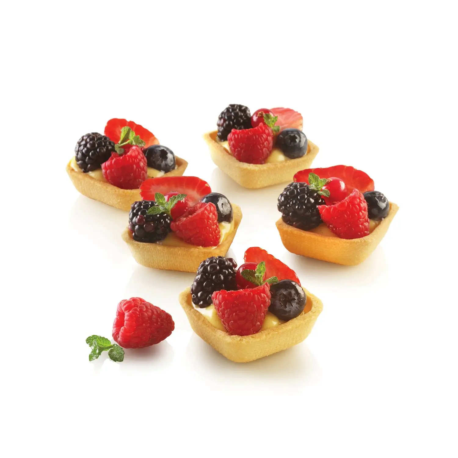 Stampi microforati in silicone e fibra di vetro ideali per la cottura. Questi innovativi stampi, grazie alla loro trama microforata, consentono una diffusione uniforme del calore, riducendo i tempi di cottura e garantendo un risultato perfetto. Ideali sia per creazioni dolci che salate. Sono perfetti per la creazione di frolle, prodotti lievitati (dolci da forno) e sfoglie. Gli stampi sono antiaderenti e possono essere utilizzati su entrambi i lati per preparare tartellette vuote o ripiene. Range di temperatura: -40ยฐC +230ยฐC