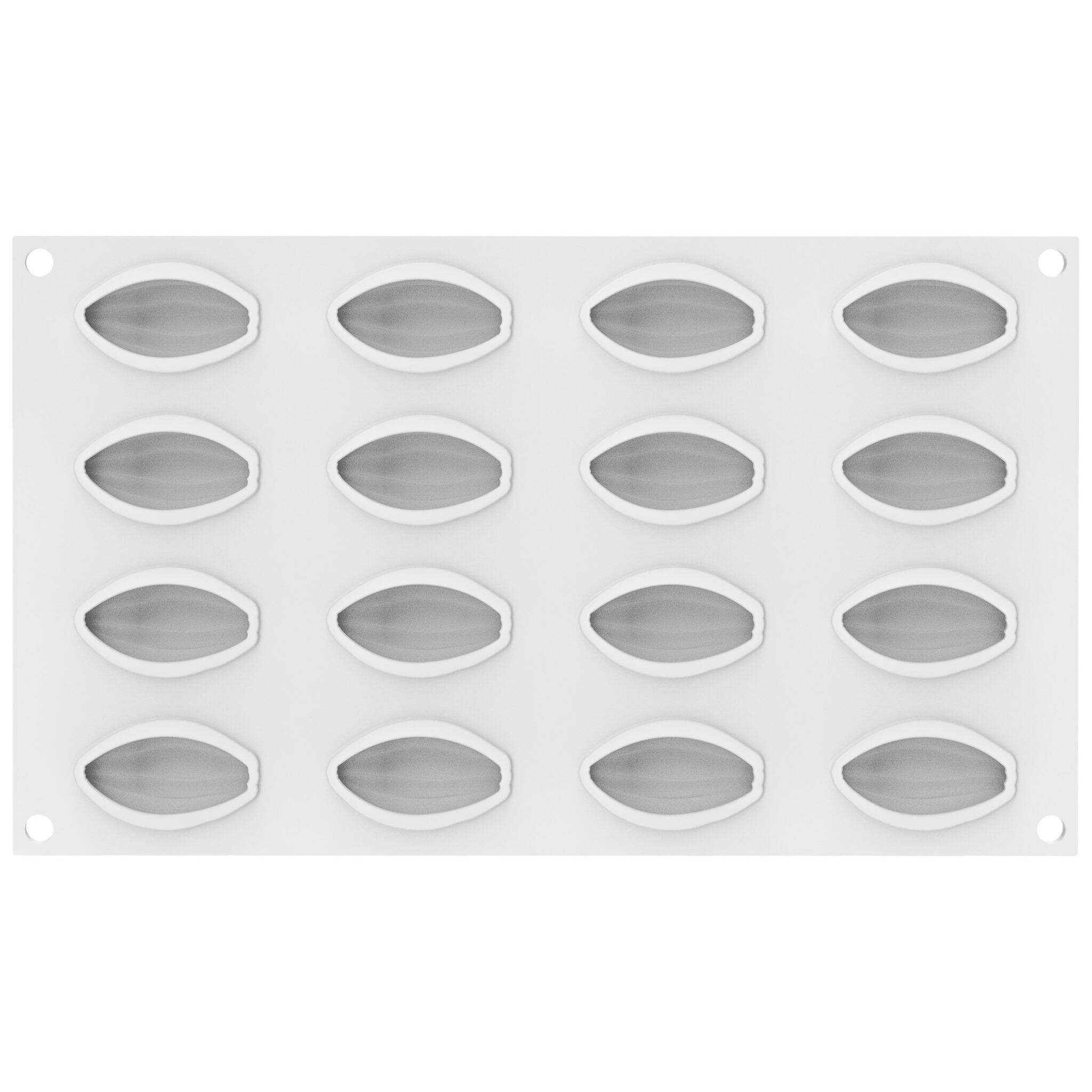 Cacao XS 12, composto da 16 cavitร da 12 ml, รจ perfetto per eleganti mousse e semifreddi ma puรฒ essere utilizzato anche per realizzare mini creazioni da forno.