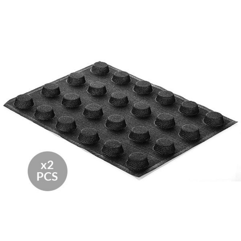 Lo stampo microforato Airplus 15 Round di Silikomart รจ realizzato in silicone e fibra di vetro, materiali ideali per la cottura.