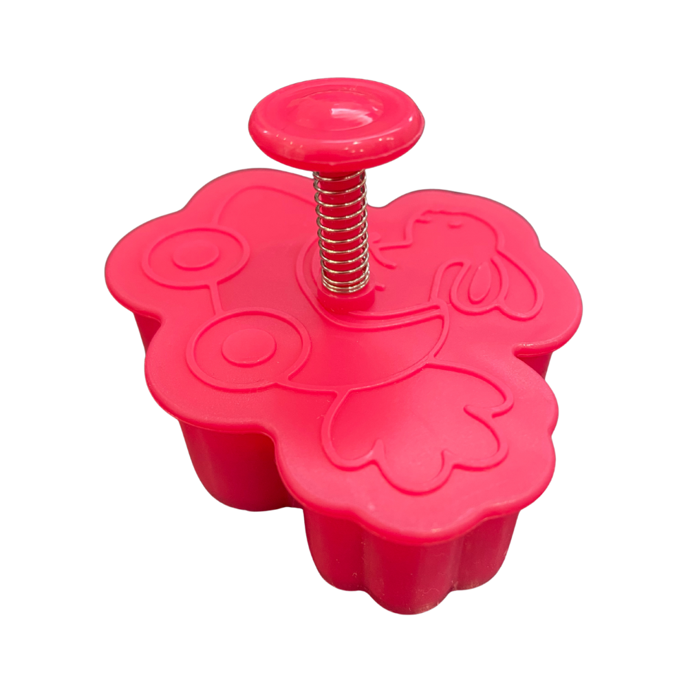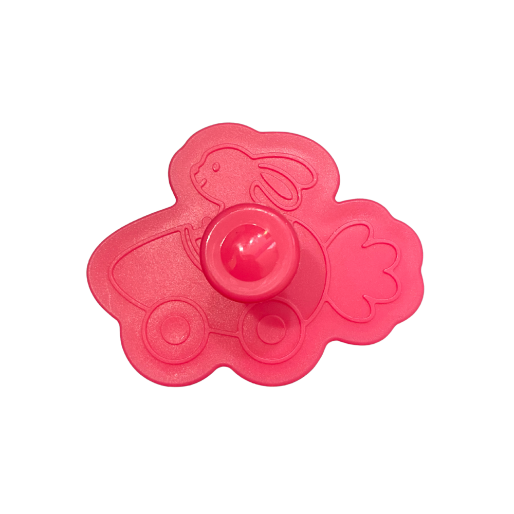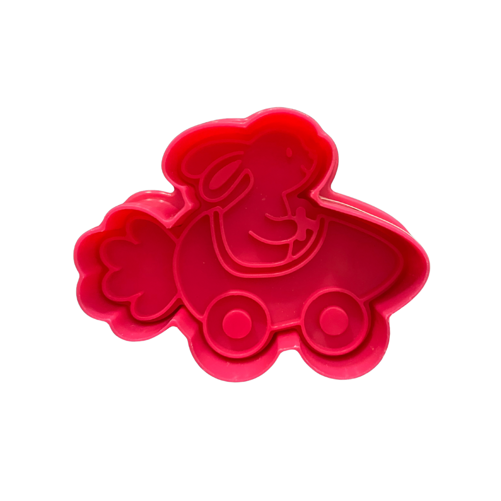 Stampino a espulsione per biscotti a forma di coniglio con automobile a forma di carota.