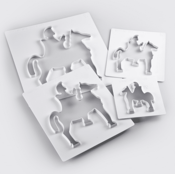 Lo Stampo per Dolce di San Martino รจ un tagliapasta perfetto per la produzione di cavalli di San Martino di pasta frolla, sfoglia ed altri impasti realizzato in plastica rigida ed รจ disponibile in 4 dimensioni: