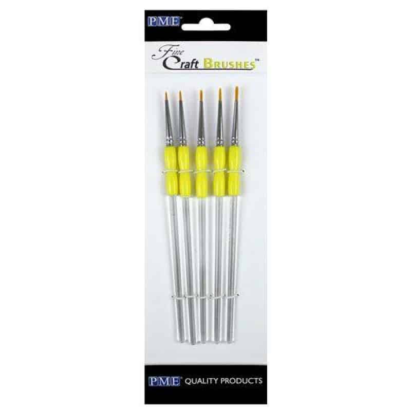 Questo set di pennelli di PME Fine Craft Brushes รจ un kit di cinque pennelli fini che sono indispensabili per la decorazione di una torta. I pennelli di nylon sono forti e durevoli. Inoltre i manici trasparenti sono provvisti di una parte di gomma per una migliore presa e aderenza e facilitร  d’uso.