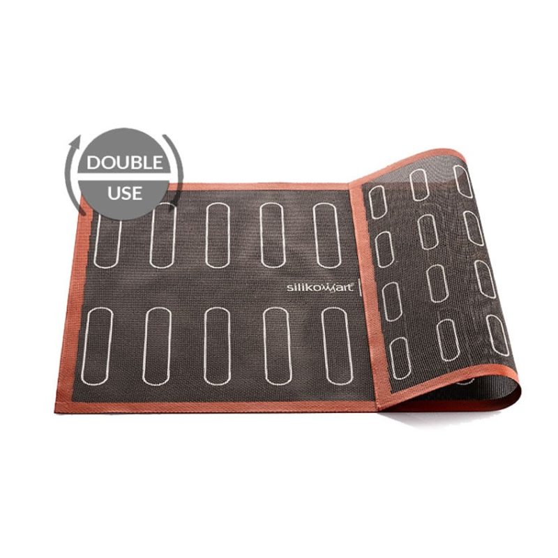 Il tappeto in silicone Air Mat Éclair di Silikomart è un tappeto microforato con anima in fibra di vetro ideale per la cottura di éclairs.
